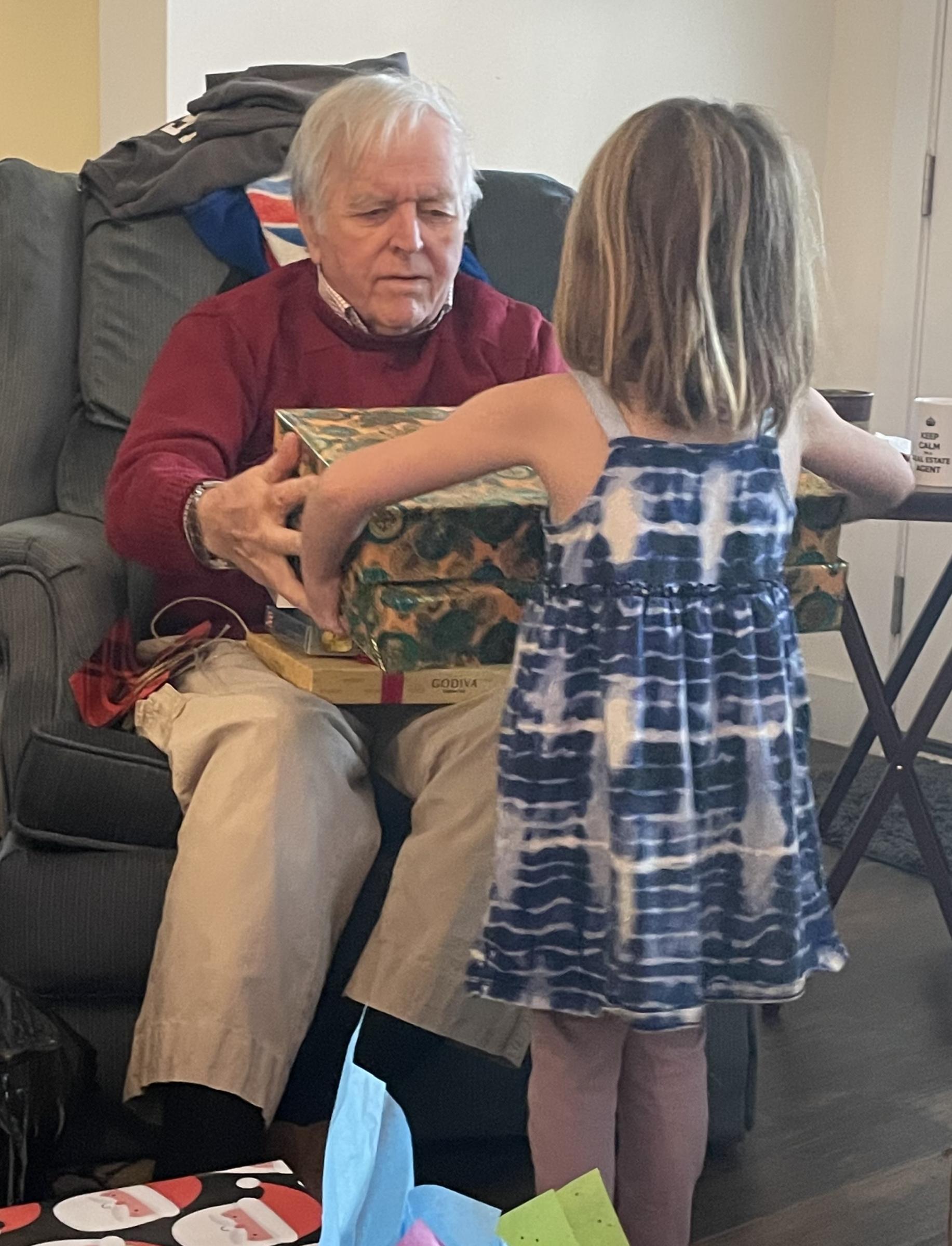 He built lasting bonds with friends and neighbors alike. He especially cherished his grandchildren, Stella and Jack, and found joy in time spent with his boisterous extended family of step-grandchildren Jeremy (Becca), Casey (Billy), Jake (Anna) and his step-great-grandchildren Blake, Maven and Wade—sharing visits, holidays, dinners, and cheering at Little League baseball games.